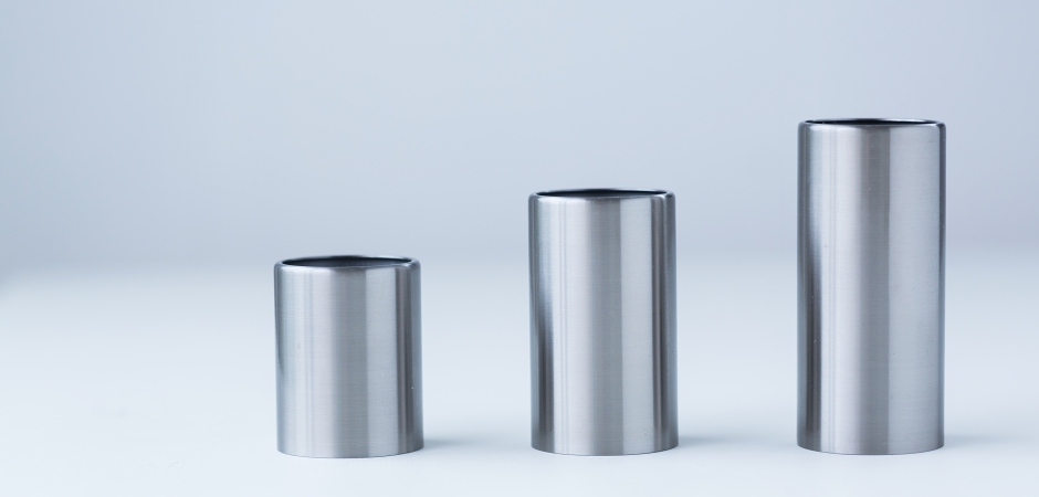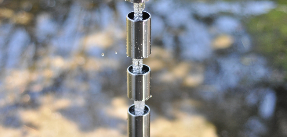 シンプルな円筒で構成されるオールステンレス製の鎖樋