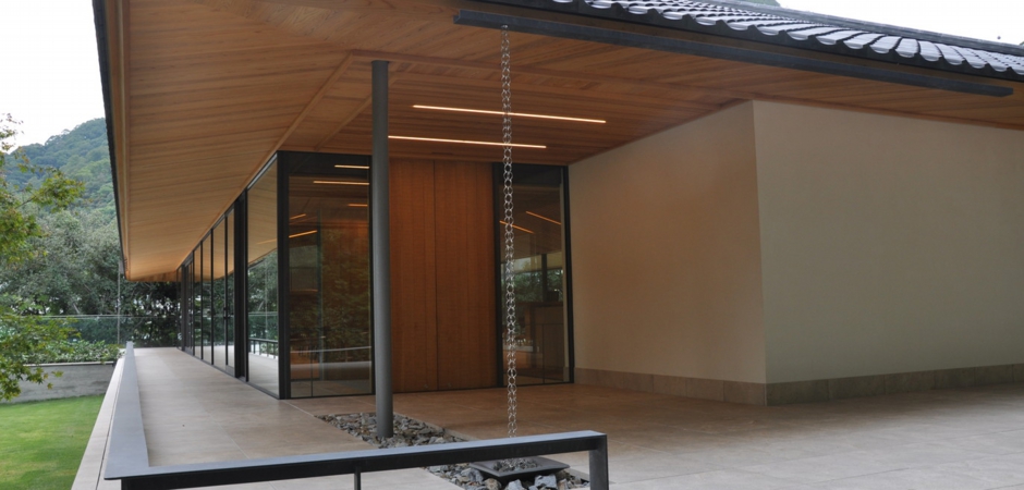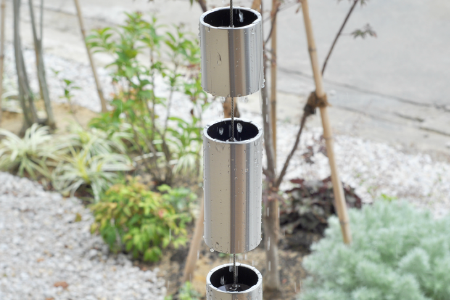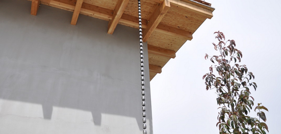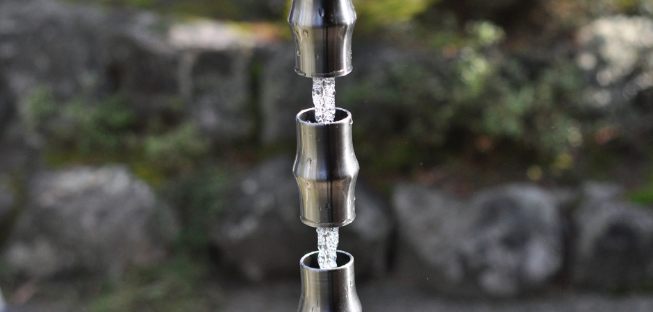 雨樋の始まりの形である竹をイメージした鎖樋