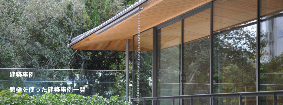 公共建築や寺院など軒の大きな建物のための大型の鎖樋
