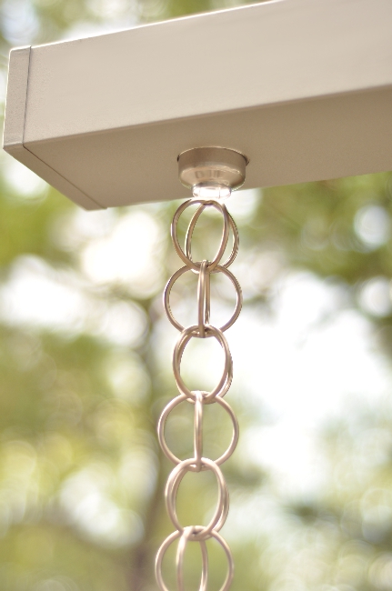 穴の直径がφ40以上になると雨水が鎖樋に収束しにくくなるため、付属のステンレス集水器を付けることをおすすめします。集水器を付けると、水の流れが鎖樋に伝わりやすくなるため、きれいに流すことができます。