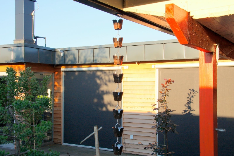 和風の鎖樋である水雲を、北欧の住宅にご利用いただいています。