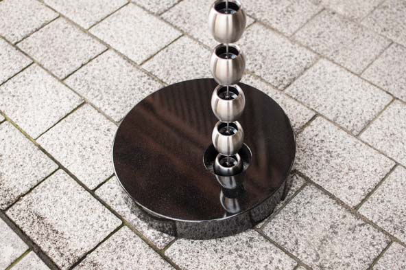 静謐な佇まいのおもりです。磨き上げられた黒御影は、鏡の様にまわりの景色を映しだします。石工職人の手によって1つずつ磨き上げられた黒御影石を用いることで、金属製鎖樋との異素材感によって、組み合わせた時の全体の高級感を高めることができます。