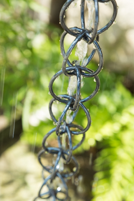古くからある形で、鎖樋の名前の由来となったリングを連ねたものです。カラーはシルバーとダークブラウンの2種類になります。素材の真鍮を職人が丁寧に1つずつリングに曲げ、溶接して作りました。雨水は個々の鎖を伝い、雫となりながら地面に導かれます。和風洋風を問わず、様々な種類の建築にご利用いただいております。雨が降らない日もリングの美しさが、建物に彩を添える印象的な鎖樋です。