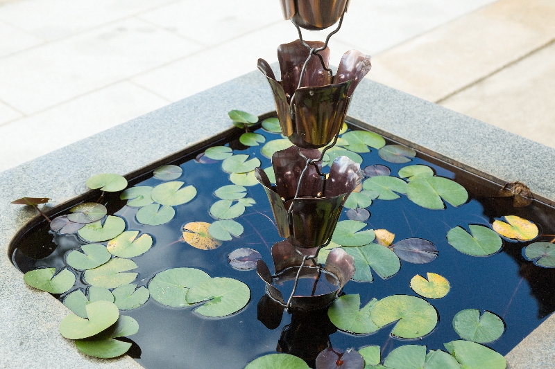 空に向かって開き、雨を求める花をイメージした鎖樋