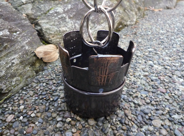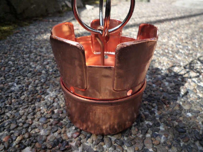 和風鎖樋用の錘です。『水雲』、『波紋』、『網代』に取り付けることができます。振れ止めとして、地面にアンカーなどで鎖樋を固定できない場合にご使用ください。カラーはダークブラウンと素材そのままの色である銅色の2種類です。網代と同じ純銅製のため、無塗装である銅色は素材の持つ味わい深い経年変化があります。取り付ける鎖樋にあわせてお選びください。