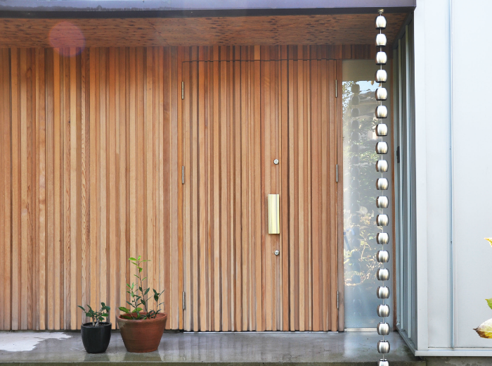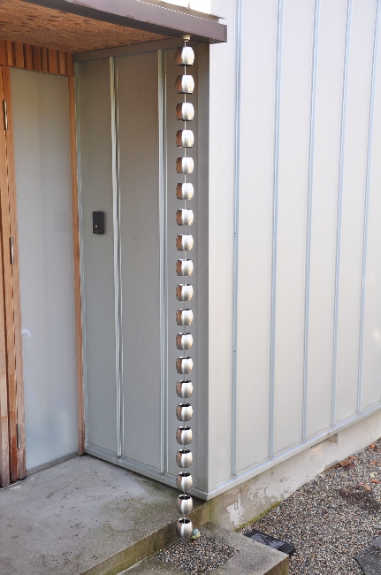 鎖樋を連結している線と、内部にある水の流れを整える中子は全てステンレス製です。